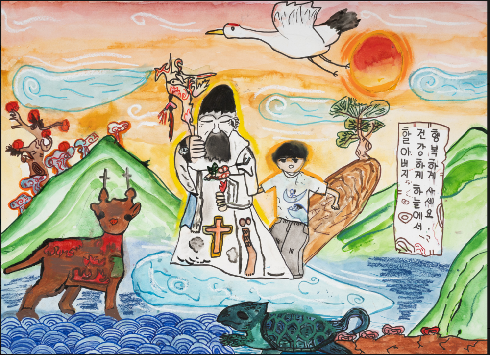 전국초등학생민화공모전 대상 작품(수원 광교초 3학년). 작품명: 우리 할아버지는 신선