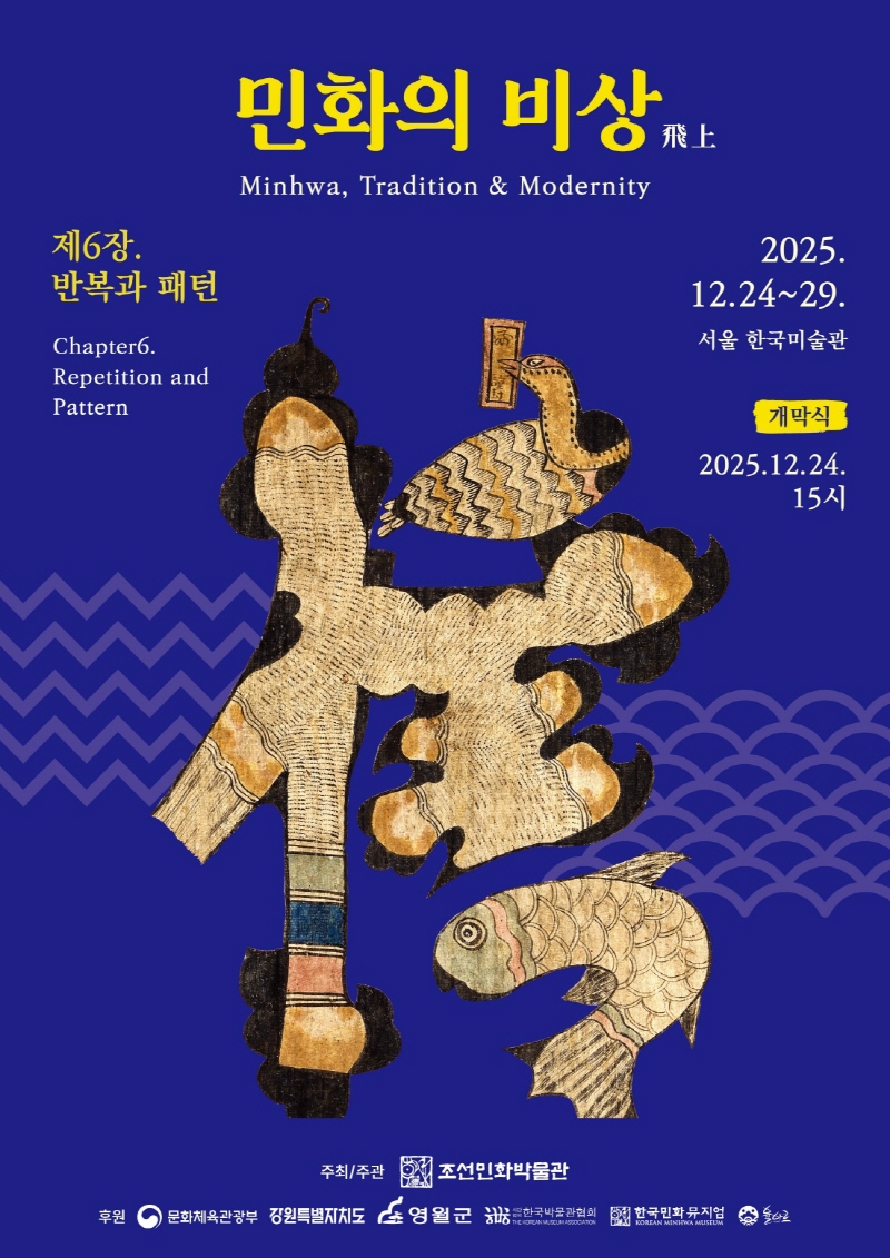 이번 여섯 번째 《민화의 비상 - 반복과 패턴》展은 예년과 같이 역대 ‘전국 민화공모전’ 수상자 단체인 ‘민수회’ 회원과 전국의 민화 작가들을 대상으로 공모와 평가로 선정된 출중한 실력을 지닌 36인의 새로운 작품과 조선민화 박물관 소장품 중 반복과 패턴이 극대화된 전통 민화를 함께 선보인다.