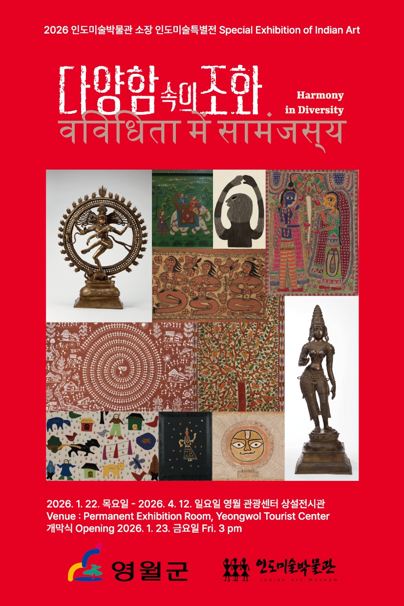 인도미술박물관이 인도미술특별전 《다양함 속의 조화》를 2026년 1월 22일부터 2026년 4월 12일까지 영월관광센터 상설전시관에서 개최한다. 이번 특별전에서는 인도미술박물관이 소장하고 있는 다양한 회화, 조각, 공예작품들을 전시한다.